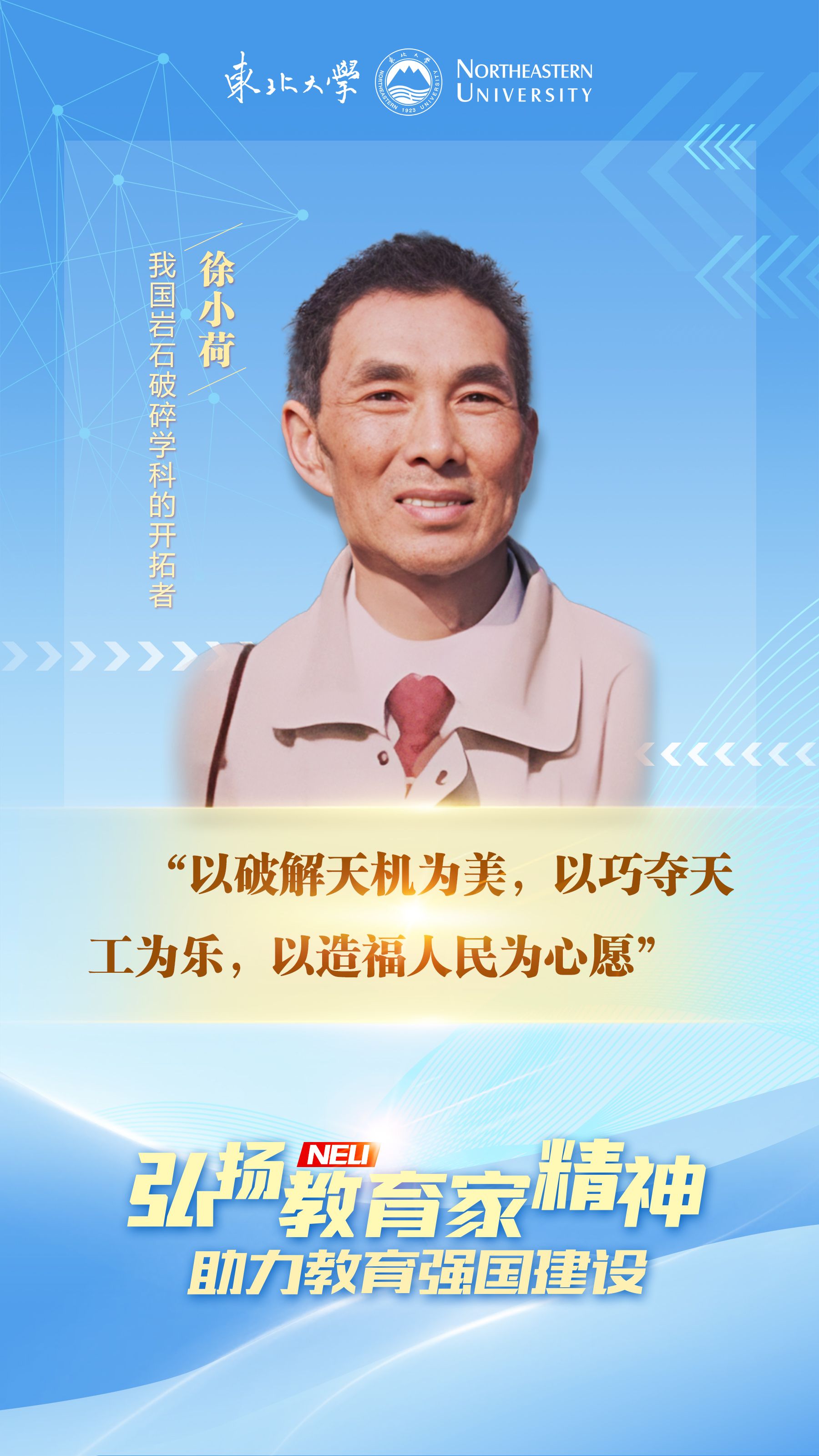 他,以破解天机为美,六十余载深耕采矿学科,为我国采矿工程学科筑牢根基;他,以巧夺天工为乐,聚焦国家战略需求,攻克诸多技术难关,实现岩石破碎领域的多项创新突破;他,以造福人民为心愿,传承“五四煤”精神,为国转系、以身许国,用一生赤诚为国家培育一批又一批矿业人才……他就是我国岩石破碎学科的开拓者,一颗为祖国耕耘于矿石之下的星辰——东北大学教授徐小荷。